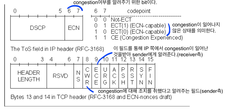 - ECN(Explicit Congetsion Notification) in IP/TCP