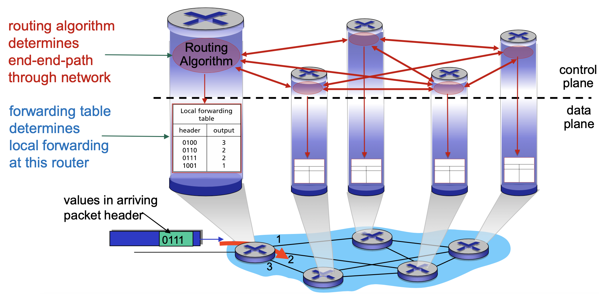 - Provide only data forwarding : routing protocol을 통해 만들어진 routing table을 보고 데이터를 다음 router로 보내주는 역할을 하게 된다. 에러나 제어 메세지는 ICMP에 의해 만들어진다.