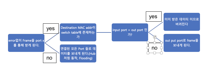 - self-learning : 자신이 받은 frame에 대한 정보를 스스로 학습하고 table에 저장한다.
