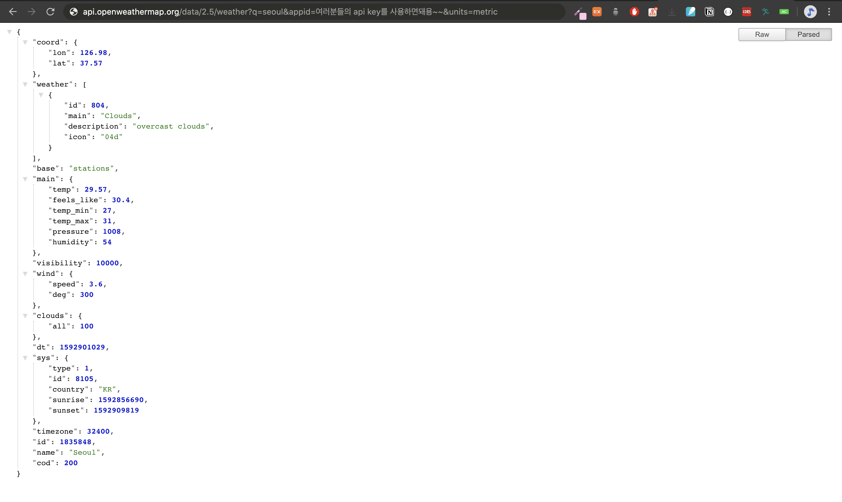 "https://api.openweathermap.org/data/2.5/weather?q=seoul&appid=apikey를입력해주세요&units=metric";
