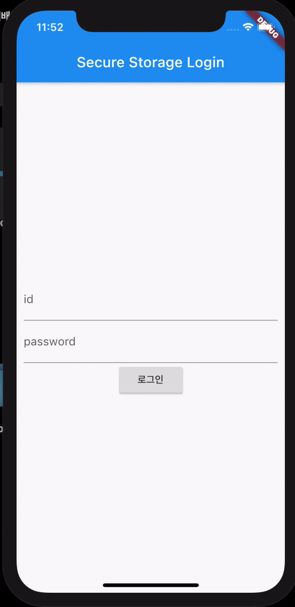 앱을 재실행 시키게 되면 남아 기기에 로그인과 관련된 정보가 존재하지 않으므로 로그인 페이지로 실행이 됩니다.
