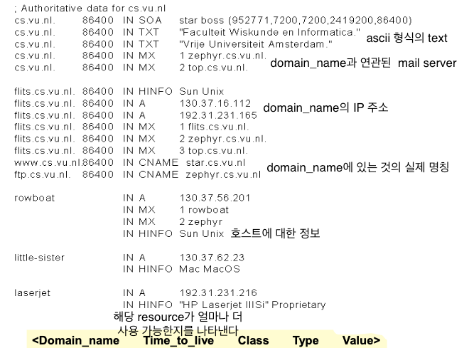 -> 형식 : (name, ttl, class, type, value)